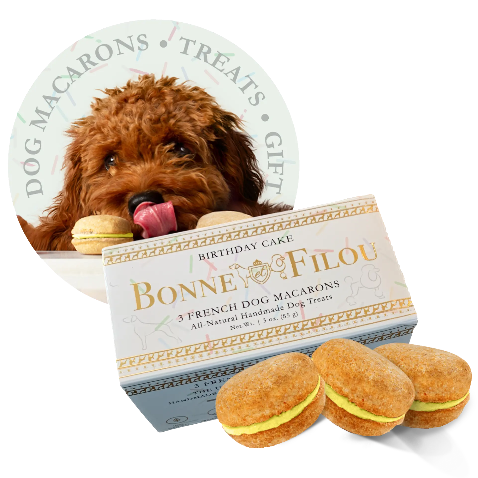 – The dog macaron is a hard treat designed for long-lasting chew. Break into smaller pieces if needed.